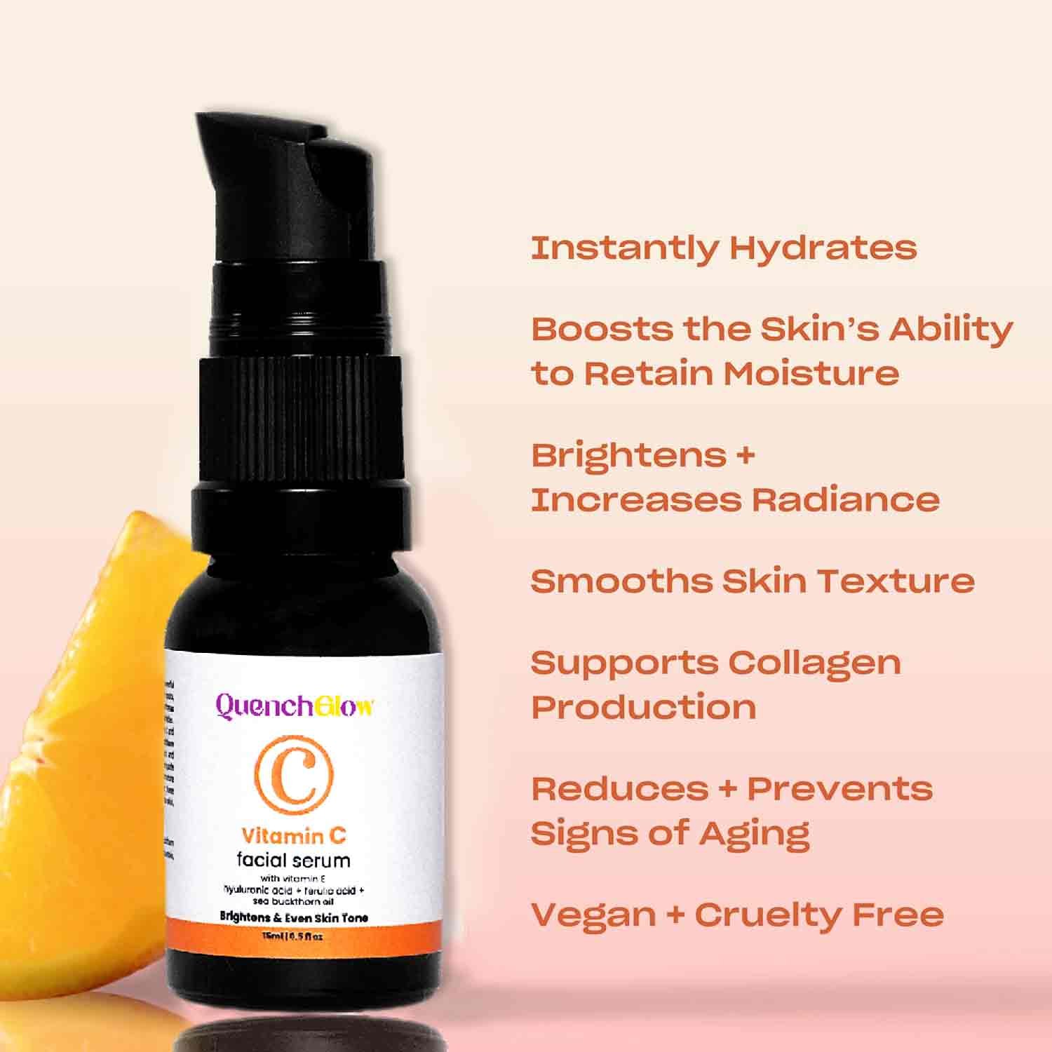 - CRUELTY FREE & MADE IN THE INDIA WITH GLOBALLY SOURCED COMPONENTS: QuenchGlow is Leaping Bunny-certified cruelty free–and all our products are manufactured and bottled in the India with globally sourced components for exceptional freshness. Dermatologist and clinically tested.